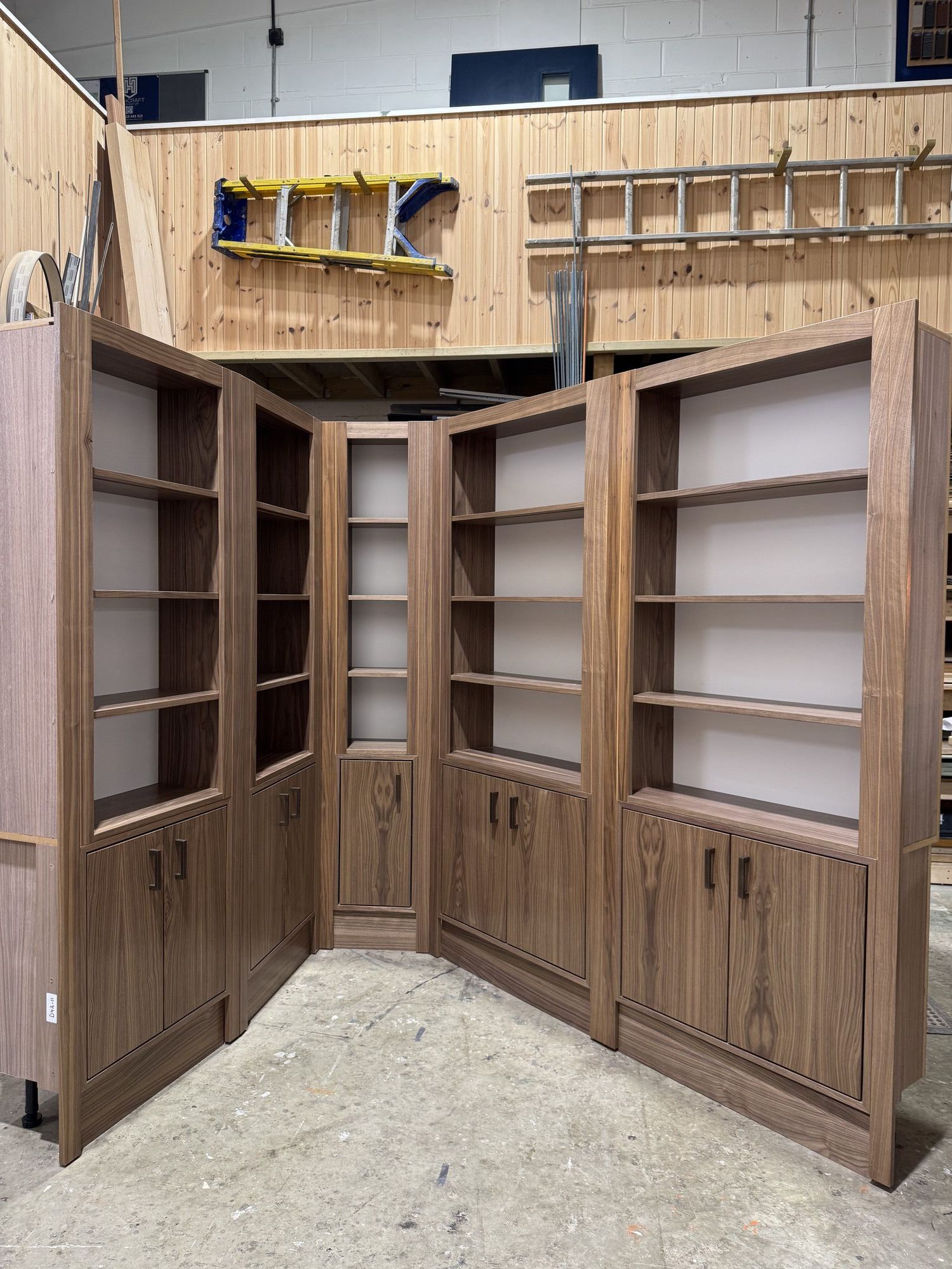 Each unit was carefully designed and handcrafted in our in-house workshop at Highcraft HQ. Working closely with the client’s specifications, we produced fully bespoke cabinetry and display shelves tailored to the space and the needs of the business.